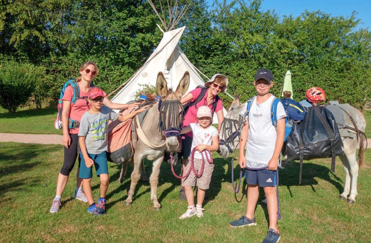 Les ânes peuvent porter les jeunes enfants (sous votre responsabilité) sur de courtes distances plusieurs fois par jour lorsqu’ils sont fatigués ou qu’il est nécessaire d’avancer plus rapidement. Si vous souhaitez faire cette randonnée avec de très jeunes enfants en dessous de 3 ans, c’est tout à fait possible mais ils devront être portés par un adulte (écharpe de portage, porte bébé de randonnée).