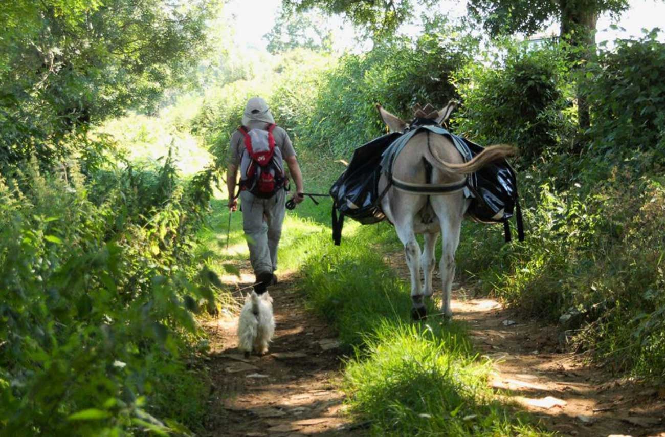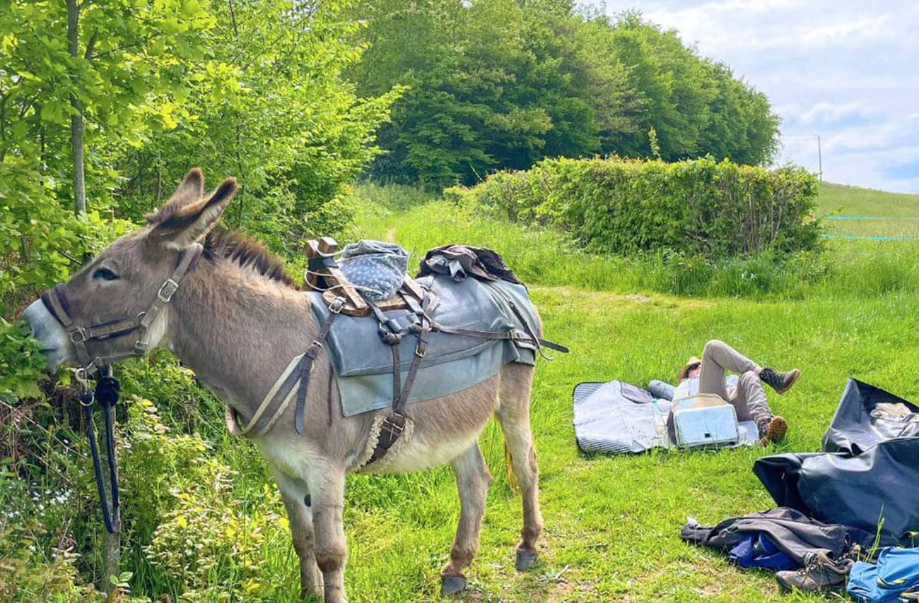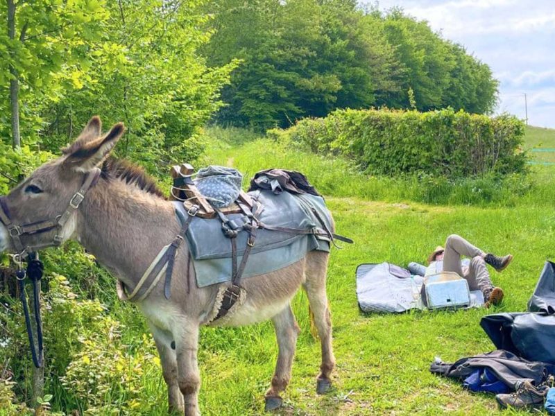 - Un seul âne, son matériel de randonnée (bât et sacoches) et sa nourriture.