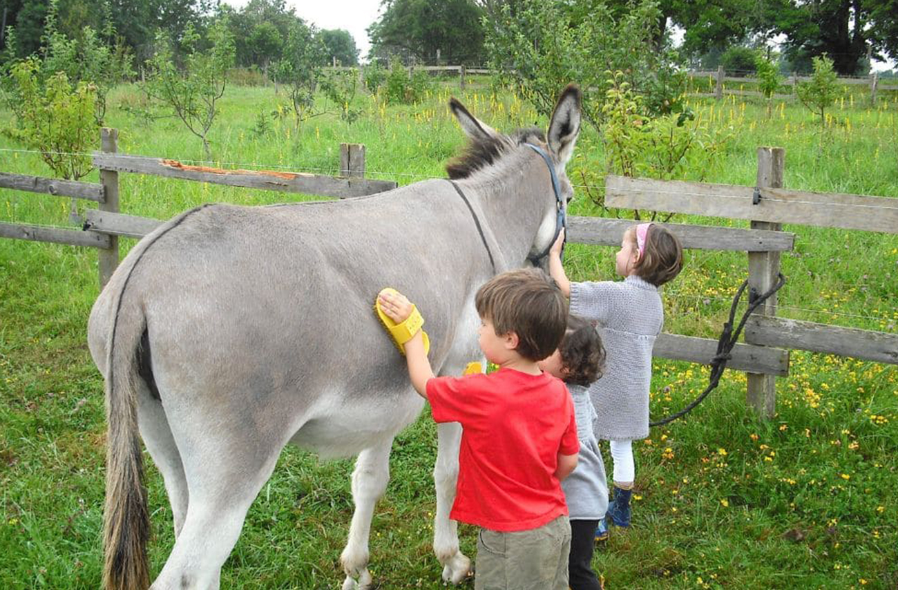 Complicité en famille avec un âne