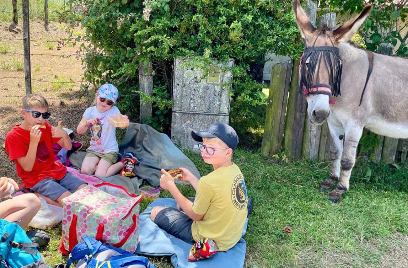 Les ânes peuvent porter les jeunes enfants (sous votre responsabilité) sur de courtes distances plusieurs fois par jour lorsqu’ils sont fatigués ou qu’il est nécessaire d’avancer plus rapidement. Si vous souhaitez faire cette randonnée avec de très jeunes enfants en dessous de 3 ans, c’est tout à fait possible mais ils devront être portés par un adulte (écharpe de portage, porte bébé de randonnée).